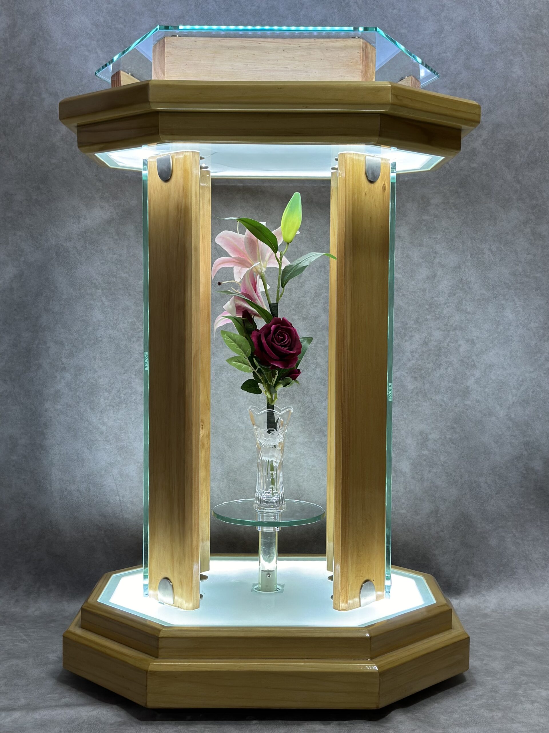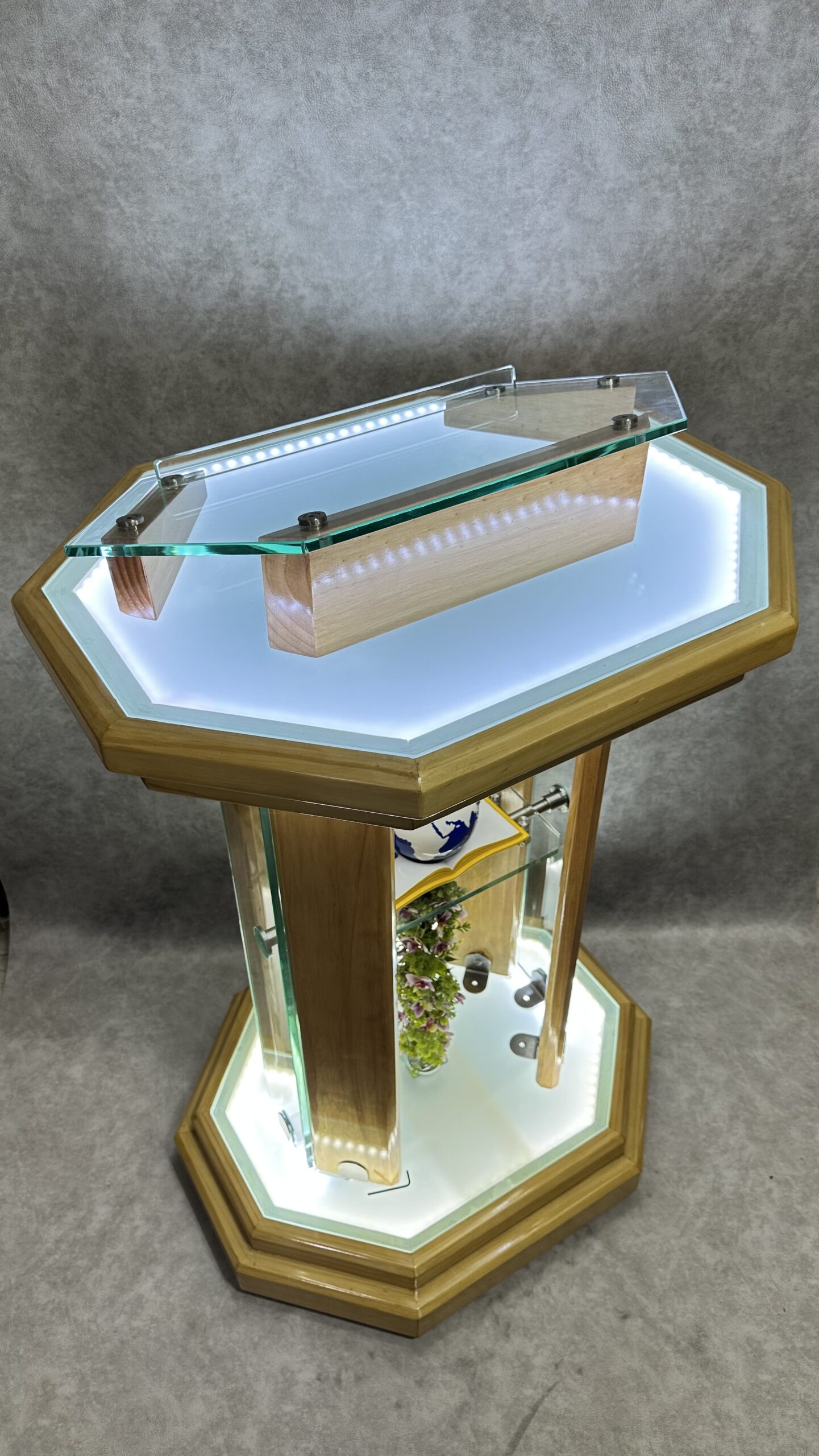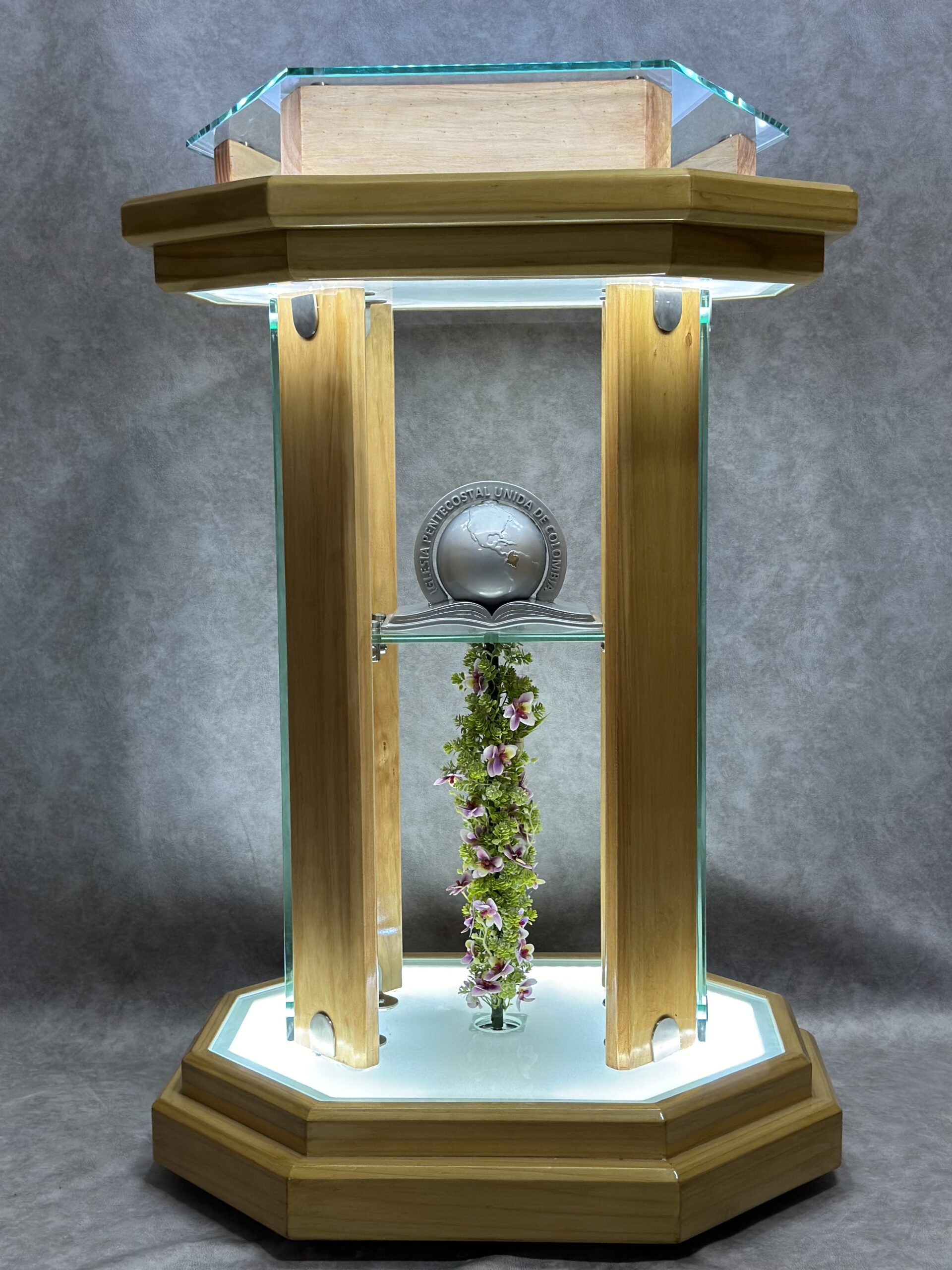 In 2024, Mar de Cristal launches one of the most innovative pulpits in its history, the ELYON Pulpit; made of wood and glass, this design offers a completely different concept to all the models designed in these 25 years of history, since it is a piece of furniture that can be renovated without any difficulty and on a low budget, personalizing the events and even the messages that are preached in the temples. It is a versatile pulpit that can be assembled with the instructions that the company provides and in this way they save significantly on the installation cost.
